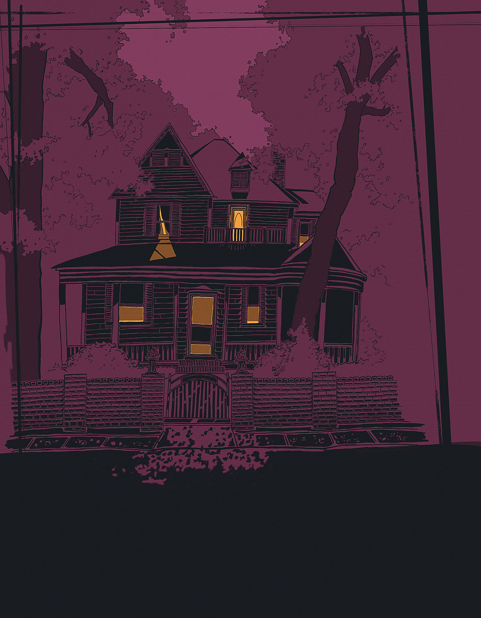 Continuing my new three-part illustrative series where seasonal whimsy meets eerie Americana. This second piece is titled “Hightower Road,” and it carries forward the theme of bringing old, forgotten structures back to life with a new, illustrative story.